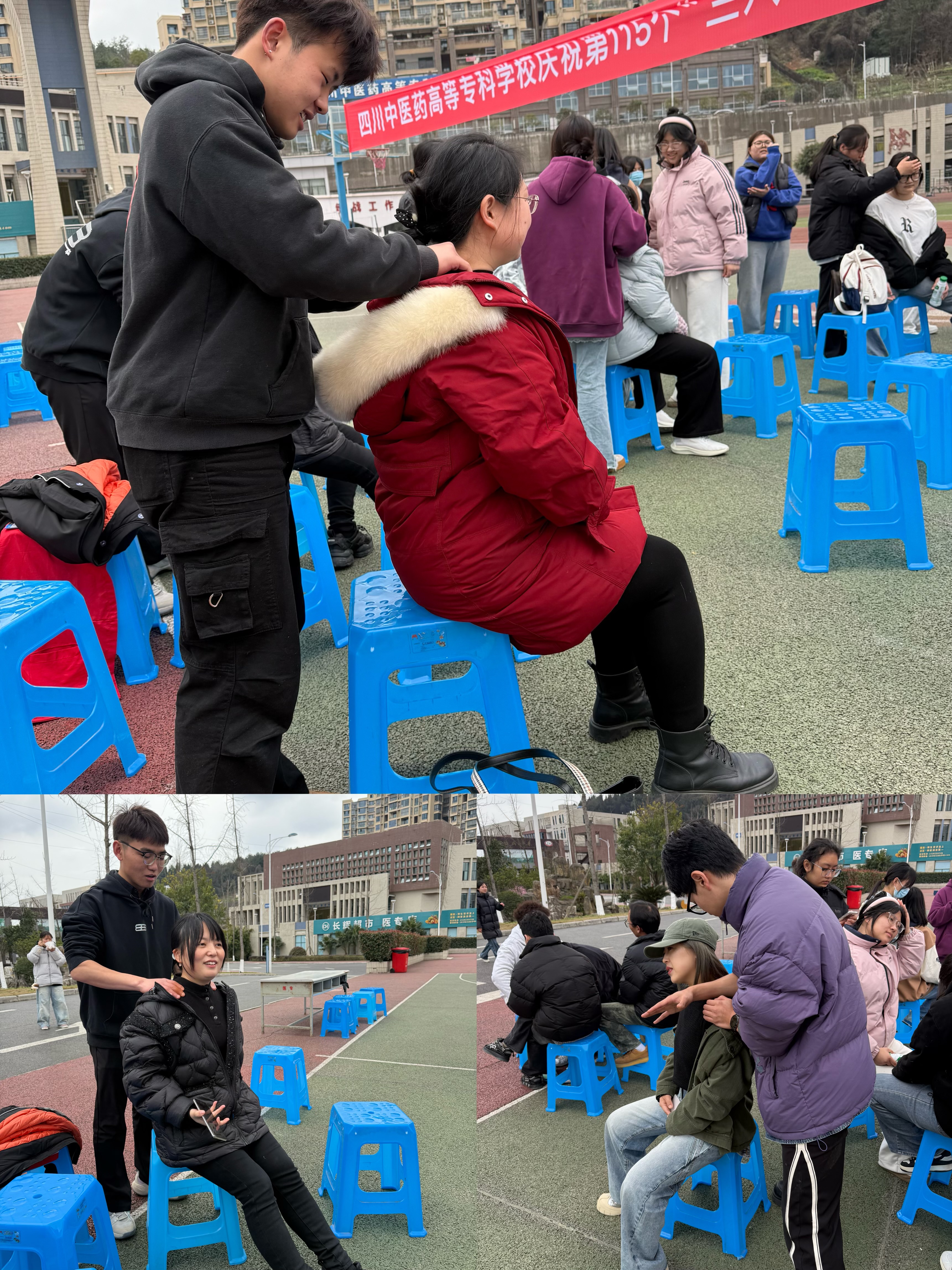 健康关爱活动于3月7日13:00 - 16:00在南园篮球场开展。校团委组织学生志愿者为女职工免费提供按摩、艾灸服务,缓解了压力减轻了疲劳,赢得女教师们的一致好评。