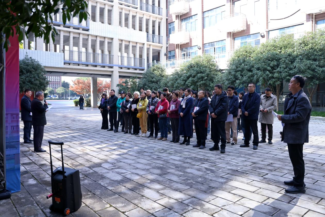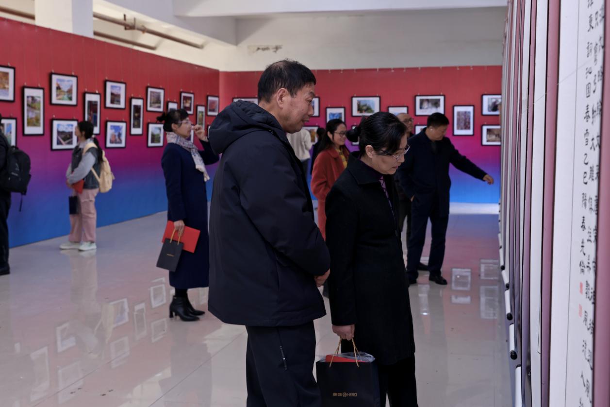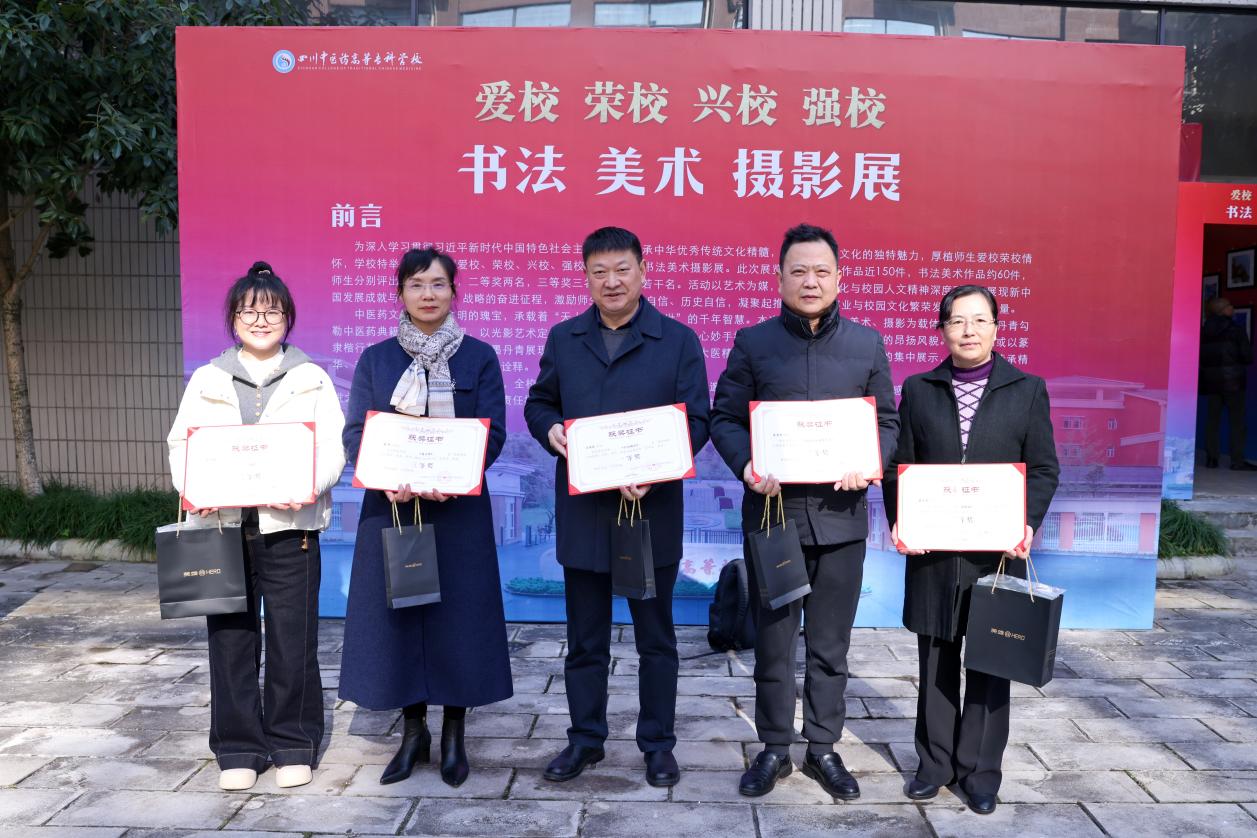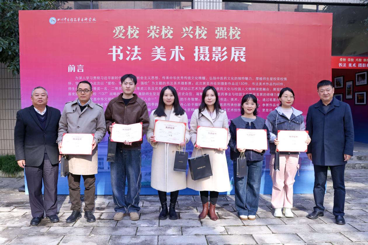 翰墨飘香润杏林,光影流彩映初心。为深入学习贯彻习近平新时代中国特色社会主义思想,传承弘扬中华优秀传统文化与中医药文化,厚植师生爱校荣校情怀,2025年11月27日,四川中医药高等专科学校“爱校 荣校 兴校 强校”书法美术摄影作品展在南区七教一楼隆重开幕。校党委副书记、工会主席商碧辉出席并宣布展览开幕,原校党委副书记、岐黄书院书法工作室负责人汪涌泉,各相关职能部门负责人、获奖师生代表及岐黄书院书法工作室成员参加了开幕式。